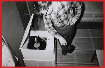 The snapshot above was taken about 1955 by my brother, David, who was standing on a chair. The record player was a Magnavox, the best available to me at the time, as I was not an engineer able to build my own, nor rich enough to buy custom-made gear. That's a Columbia LP playing... It might be CL 500, the very first Columbia 12" pop LP, a Benny Goodman compilation. I have listened to a lot of records since then! There's too much |